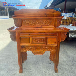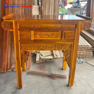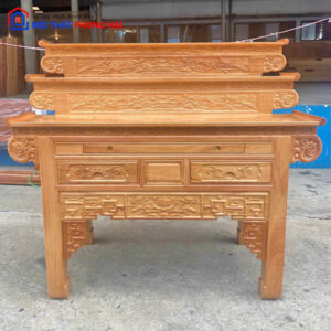 Mô tả: Bàn thờ gỗ sồi màu sáng, thiết kế hiện đại với các hoa văn chạm khắc tinh tế, mang lại vẻ đẹp trang nhã và trang nghiêm. Sản phẩm có ngăn kéo tiện lợi phía dưới, giúp tối ưu không gian lưu trữ đồ thờ. Chất liệu gỗ sồi tự nhiên chắc chắn, chống mối mọt, đảm bảo sử dụng lâu dài. Đây là lựa chọn lý tưởng cho không gian thờ cúng nhỏ gọn và ấm cúng của gia đình.