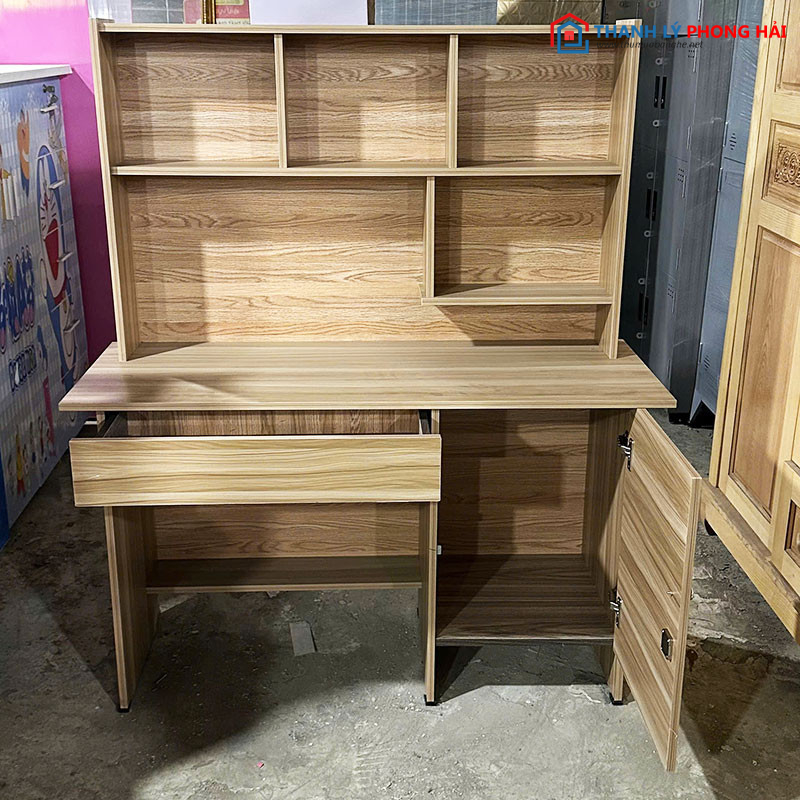 Thanh Lý Phong Hải luôn có sẵn nhiều mẫu bàn học thanh lý, bàn làm việc, bàn học sinh gỗ MDF, bàn có kệ sách với giá hợp lý. Mẫu bàn học gỗ phủ Melamine này là lựa chọn lý tưởng cho gia đình muốn tìm bàn học bền đẹp, dễ vệ sinh và gọn gàng. Ngoài ra, kho còn nhiều mẫu bàn học đơn giản, bàn có tủ, bàn vi tính hiện đại để khách hàng lựa chọn. Anh chị có thể ghé xem trực tiếp tại kho hoặc liên hệ Zalo – điện thoại để được gửi hình và giữ mẫu nhanh nhất.
