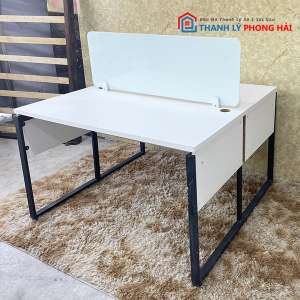 - Mô tả: Bàn làm việc dành cho 2 người với vách ngăn giữa hiện đại, tạo không gian riêng cho cá nhân làm việc. Mỗi bàn được tích hợp lỗ luồng diện tiện cho việc dùng máy tính, laptop an toàn. Mẫu bàn gỗ cao cấp có khả năng chống thấm nước, chống ẩm móc, bền bỉ theo thời gian sử dụng. Chân sắt chắc chắn, chịu lực tốt, an toàn sử dụng.