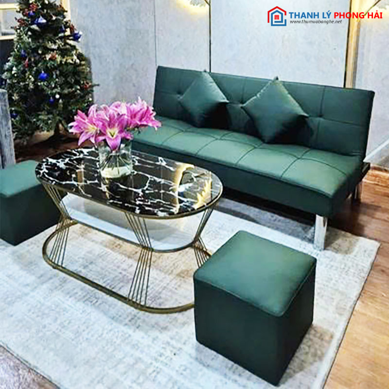Thanh Lý Phong Hải chuyên thanh lý sofa bed, sofa da, bàn trà và nội thất phòng khách với giá rẻ tận kho. Bộ sofa bed màu xanh kèm bàn trà 2 tầng là lựa chọn hoàn hảo cho không gian nhỏ, vừa tiết kiệm diện tích vừa tạo cảm giác sang trọng, tiện lợi. Ngoài mẫu này, cửa hàng còn nhiều mẫu sofa bed nhung, sofa góc L và bàn trà mặt đá, kính với đa dạng kích thước. Hãy đến kho xem hàng trực tiếp hoặc liên hệ qua Zalo – điện thoại để được tư vấn và giữ mẫu nhanh nhất.