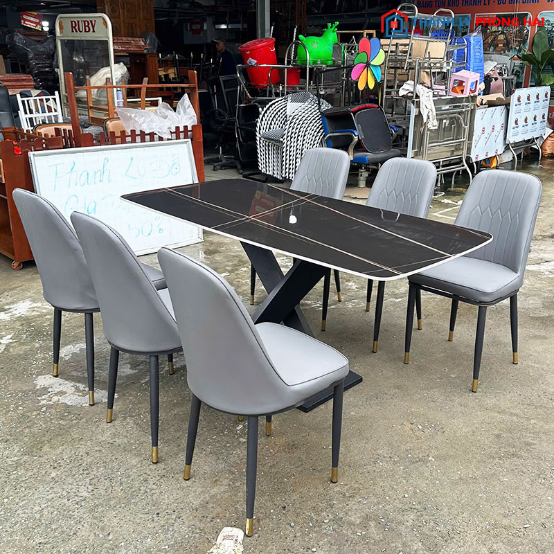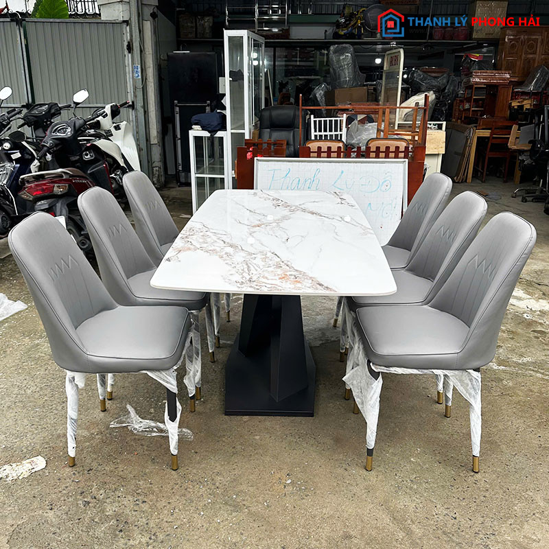 Bộ bàn ăn mặt đá 1m6 kèm 6 ghế da xám hiện có sẵn tại Thanh Lý Phong Hải, giao hàng tận nơi tại TP.HCM và các tỉnh lân cận. Ngoài mẫu bàn ăn này, kho còn nhiều loại bàn ăn chân gỗ, chân inox, bàn tròn, bàn vuông với phong cách đa dạng. Quý khách có thể tham khảo thêm tại mục bàn ăn thanh lý để tìm được sản phẩm phù hợp nhất cho không gian sống của gia đình.