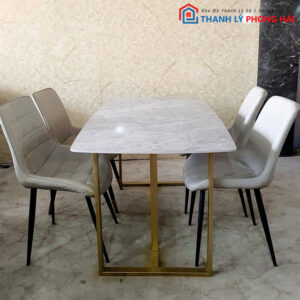 Bộ bàn ăn mặt đá kèm 4 ghế chân sắt cũ thanh lý