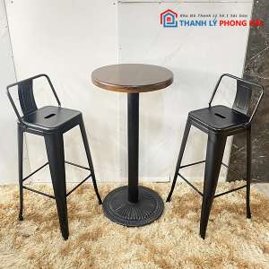 Bộ Bàn Ghế Bar Cafe Chân Sắt Mặt Gỗ Cũ Giá Rẻ