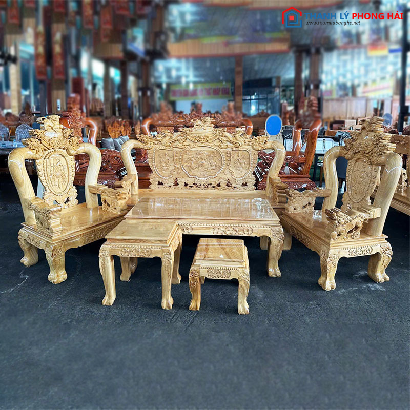 Kho Thanh Lý Phong Hải chuyên cung cấp salon gỗ cao cấp thanh lý, nội thất gỗ tự nhiên với thiết kế tinh xảo và độ bền vượt trội. Các mẫu bàn ghế gỗ gõ được chạm khắc hoàn toàn thủ công, mang đậm nét truyền thống Việt. Bộ salon lưng tấm chạm nghê là lựa chọn hoàn hảo cho những ai yêu thích sự sang trọng và quyền quý. Mời quý khách đến kho xem trực tiếp hoặc liên hệ Zalo để được tư vấn và giữ hàng nhanh nhất.