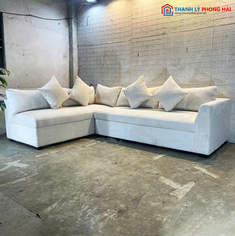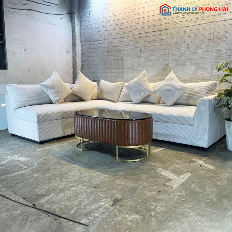 Bộ sofa góc L kèm bàn oval là lựa chọn tuyệt vời cho khách hàng muốn một sản phẩm đẹp, bền, sang, dễ phối nội thất. Liên hệ để xem trực tiếp hoặc giữ hàng nhanh! Ngoài bộ sofa nhung gân này, Thanh Lý Phong Hải còn nhiều mẫu sofa bọc da, bọc vải,… Xem thêm tại đây!