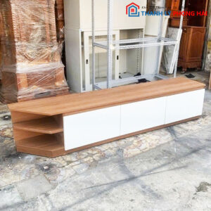 Mô tả: Kệ tivi cũ dài 1m9 với thiết kế hiện đại, bao gồm nhiều ngăn chứa đồ tiện dụng. Phần bề mặt được phủ melamine màu gỗ tự nhiên kết hợp với các ngăn kéo màu trắng, tạo sự tươi mới cho không gian. Kích thước 36cm x cao 40cm, dễ dàng đặt tivi hoặc các thiết bị điện tử khác.
