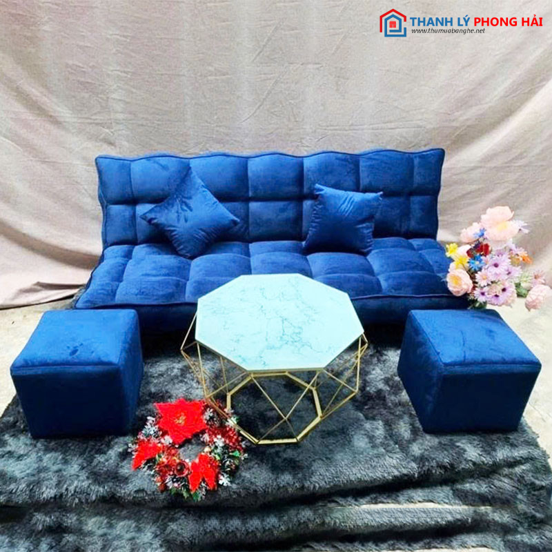Thanh Lý Phong Hải chuyên thanh lý sofa bed, sofa góc, sofa da, bàn trà và nội thất gia đình giá rẻ tận kho. Mẫu sofa bed bánh ú 2 màu xanh là lựa chọn hoàn hảo cho không gian nhỏ gọn, vừa dùng làm ghế vừa làm giường cực tiện lợi. Ngoài ra, kho còn nhiều mẫu sofa bed khác với chất liệu da, nhung, nỉ và nhiều tông màu trẻ trung khác nhau. Hãy ghé xem trực tiếp hoặc liên hệ qua Zalo – điện thoại để được gửi hình thật và giữ mẫu sớm nhất.