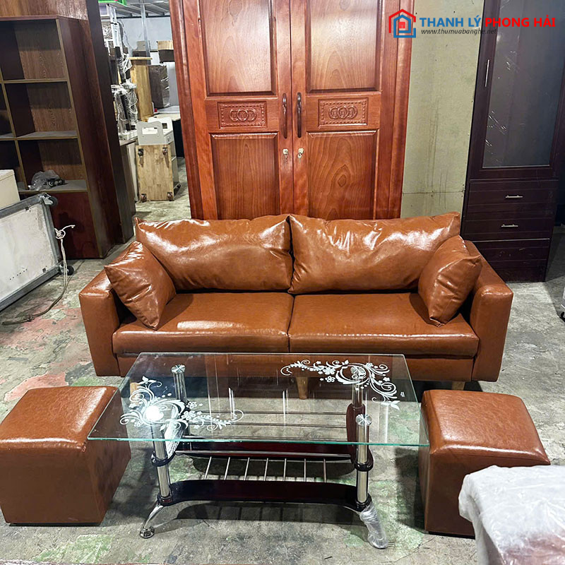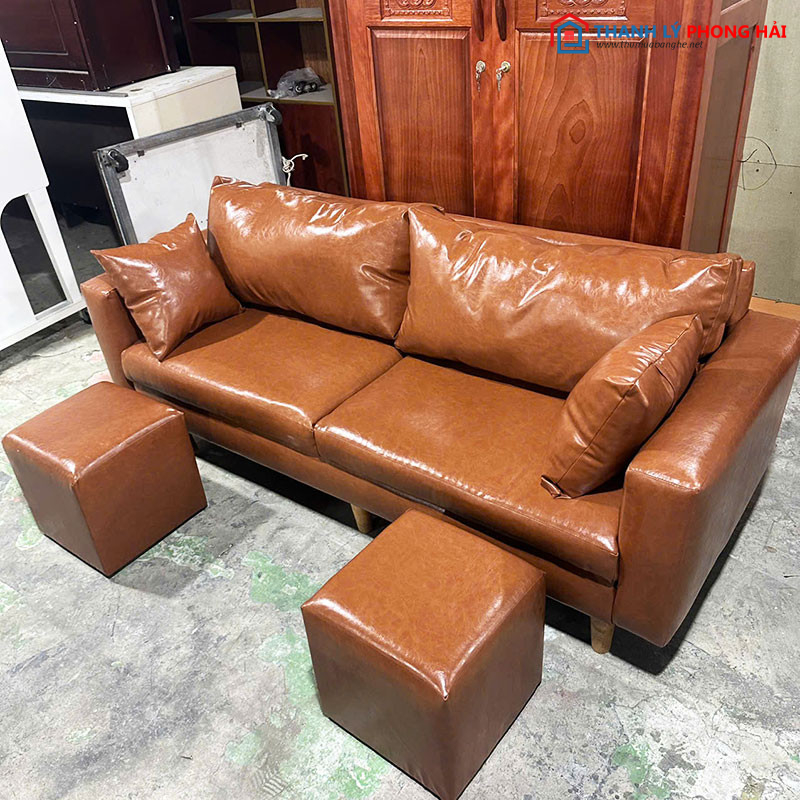 Sofa Bọc Da Kèm Gối Và 2 Đôn Vuông Mới 99% (Nhiều Màu) – Hiện Đại, Sang Trọng
