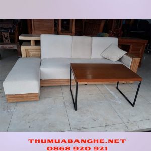 Bộ sofa có màu kem tồn kho còn mới 99%. Khung làm bằng gỗ, nệm dày bọc vải có màu kem như hình. Mẫu sofa góc L được thiết kế 2 băng dài ghép lại, có thể ngồi hoặc nằm thỏa mái. Giá thanh lý: 7.000.000đ.
