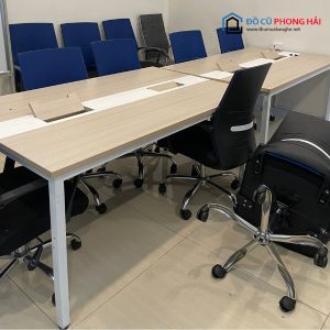 - Mô tả: Mẫu bàn họp với thiết kế đơn giản, tinh tế. Phần chân khung sắt cực kỳ chắc chắn, mặt bàn rộng rãi có nơi luồn dây diện giúp mặt bàn trở nên gọn gàng, tuy đã qua sử dụng nhưng sản phẩm còn rất tốt độ mới lên tới 90% mua về là dùng ngày. Màu sắc hài hòa phù hợp nhiều không gian, thích hợp sử dụng cho văn phòng, cơ quan, trường học,…