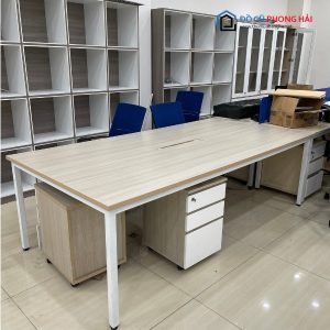 - Mô tả: Mẫu bàn họp với thiết kế khung sắt chắn chắn, mặt bàn làm bằng gỗ công nghiệp cực kỳ cứng cáp và dễ dàng vệ sinh khi bám bụi bẩn, có chỗ luồn dây điện ở giữa giúp mặt bàn gọn gàng và ngăn nắp tối ưu diện tích. Màu sắc đơn giản nhưng sang trọng phù hợp nhiều không gian, thích hợp sử dụng tại văn phòng làm việc, cơ quan,…