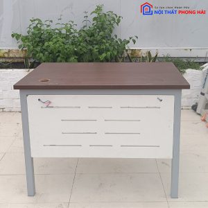- Mô tả: Mẫu bàn làm việc với kiểu dáng đơn giản và hiện đại, với phần chân sắt chắc chắn và cứng cáp. Mặt bàn rộng rãi được thiết kế thông minh với 1 bửng phía trước và 1 lỗ luồn dây điện tiện lợi, tạo nên sự gọn gàng và sắp xếp ngăn nắp cho không gian làm việc. Mặc dù đã qua sử dụng, bàn vẫn duy trì được tình trạng tốt và phù hợp cho nhiều môi trường công việc như văn phòng, cơ quan làm việc và nhiều không gian làm việc khác.
