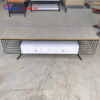- Mô tả: Mặt bàn ấn tượng với một thiết kế độc lạ, chiều dài ban đầu 1,2m và có khả năng mở rộng lên tới 1,8m. Khung và chân bàn được chế tạo từ sắt sơn tĩnh điện cao cấp, chống hoen gỉ, trong khi chân ghế được mạ một lớp vàng sang trọng. Sản phẩm này là một bàn ăn có khả năng kéo dài thông minh, cho phép bạn gọn gàng lưu giữ nó khi không sử dụng, tạo ra không gian bếp rộng rãi, tiện nghi và gọn gàng hơn.