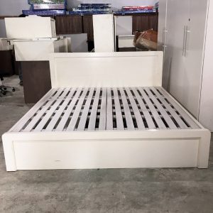 - Mô tả: Giường có thiết kế đơn giản. Phần khung được làm cực kỳ chắc chắn. Có hai hộc lưu trữ bên dưới, tạo không gian tiện lợi để lưu trữ quần áo, chăn, gối hoặc các vật dụng cá nhân. Màu sắc trắng giúp tạo nên vẻ đẹp thanh lịch và sạch sẽ, phù hợp với nhiều phong cách trang trí nội thất hiện nay. Mặc dù đã qua sử dụng nhưng giường còn rất mới, mua về là sử dụng ngay.