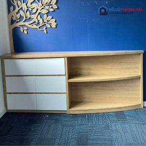• Mô tả: Mẫu kệ trưng bày với thiết kế bo góc cong tích hợp thêm ngăn kéo giúp tiết kiệm diện tích và không gian, chất liệu gỗ cứng cáp và bền bỉ, dễ dàng vệ sinh. Màu sắc vân gỗ cổ điển, phù hợp với nhiều không gian nội thất.