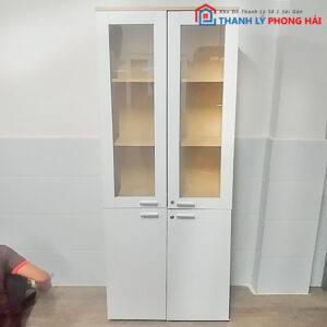 Mô tả: Tủ hồ sơ cũ với thiết kế 4 cánh cửa kính, mang lại vẻ ngoài thanh lịch và hiện đại, phù hợp cho các văn phòng, phòng làm việc tại nhà, hoặc bất kỳ không gian nào cần lưu trữ hồ sơ gọn gàng và ngăn nắp.